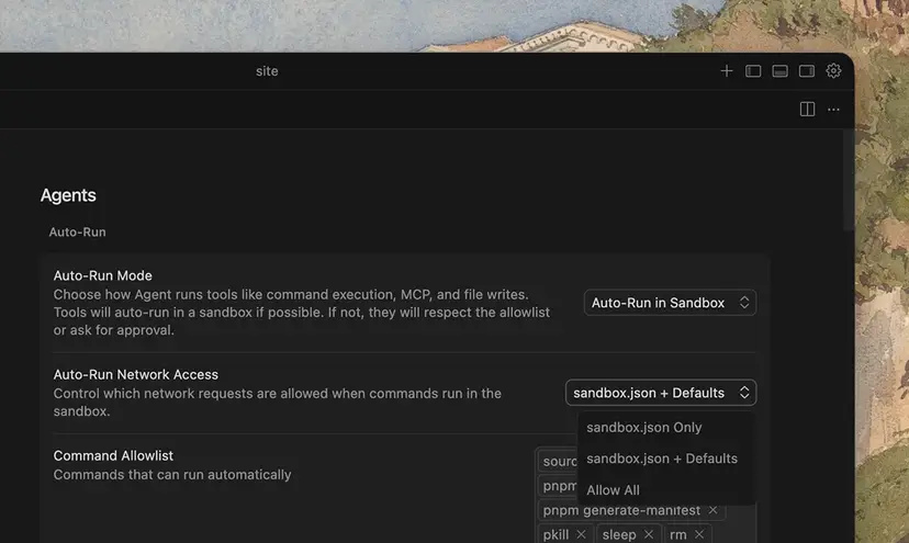 在安全与权限控制方面,沙盒 新增了对域名和本地文件系统的细粒度访问控制,提供 仅用户配置、用户配置+默认值 及 允许全部 三种模式。企业版管理员可通过 管理控制台 强制实施网络策略,确保组织级的出站访问安全。