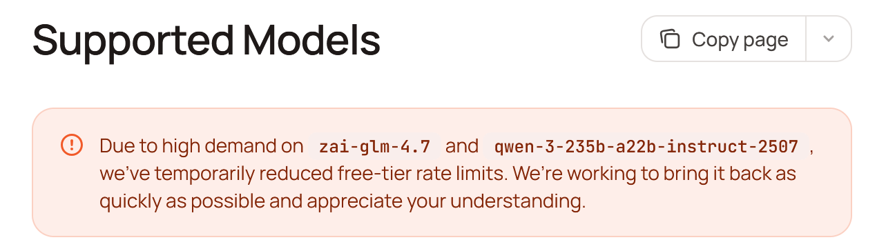 Cerebras下调部分免费层级的推理额度 #9