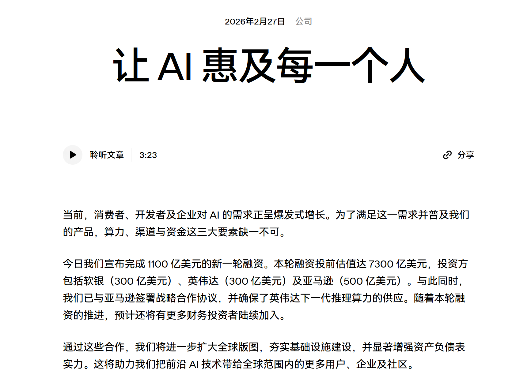 OpenAI完成1100亿美元融资并与亚马逊达成战略合作 #1