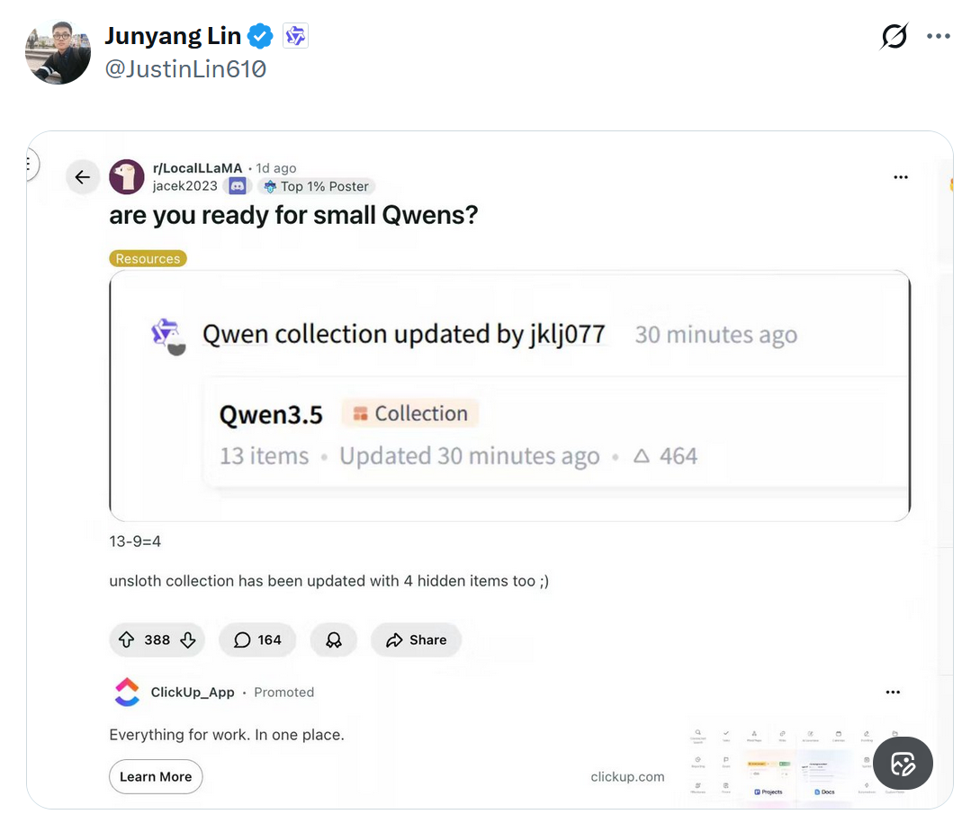 - https://x.com/JustinLin610/status/2028072650619380067