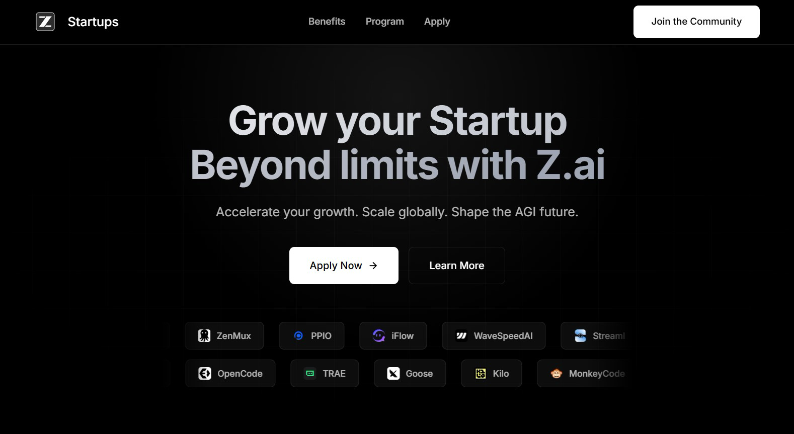 智谱 Z.ai 宣布 Startup Program 正式开放申请,入选团队将获得 Free API credits、Priority rate limits 以及 Early API Access 等核心权益。