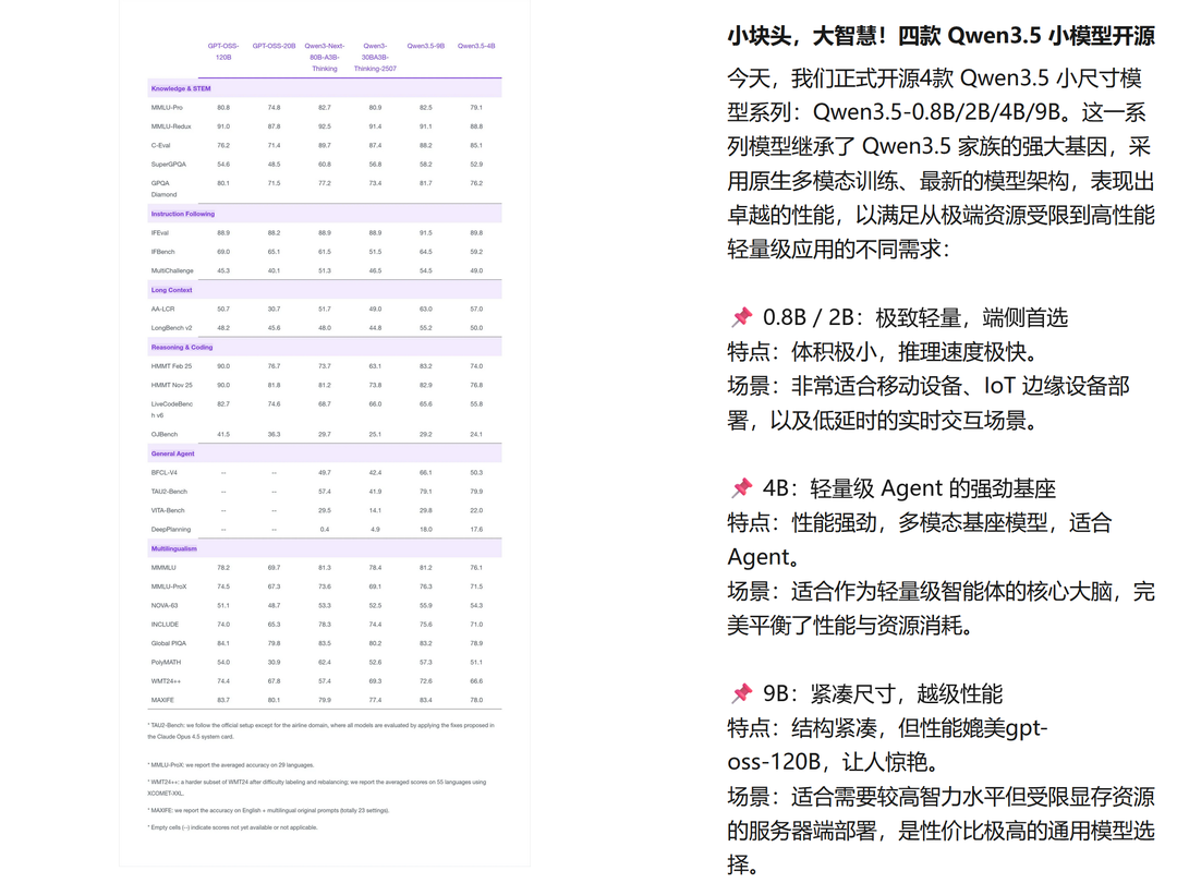 Qwen 团队正式发布了 Qwen 3.5 小模型系列,涵盖