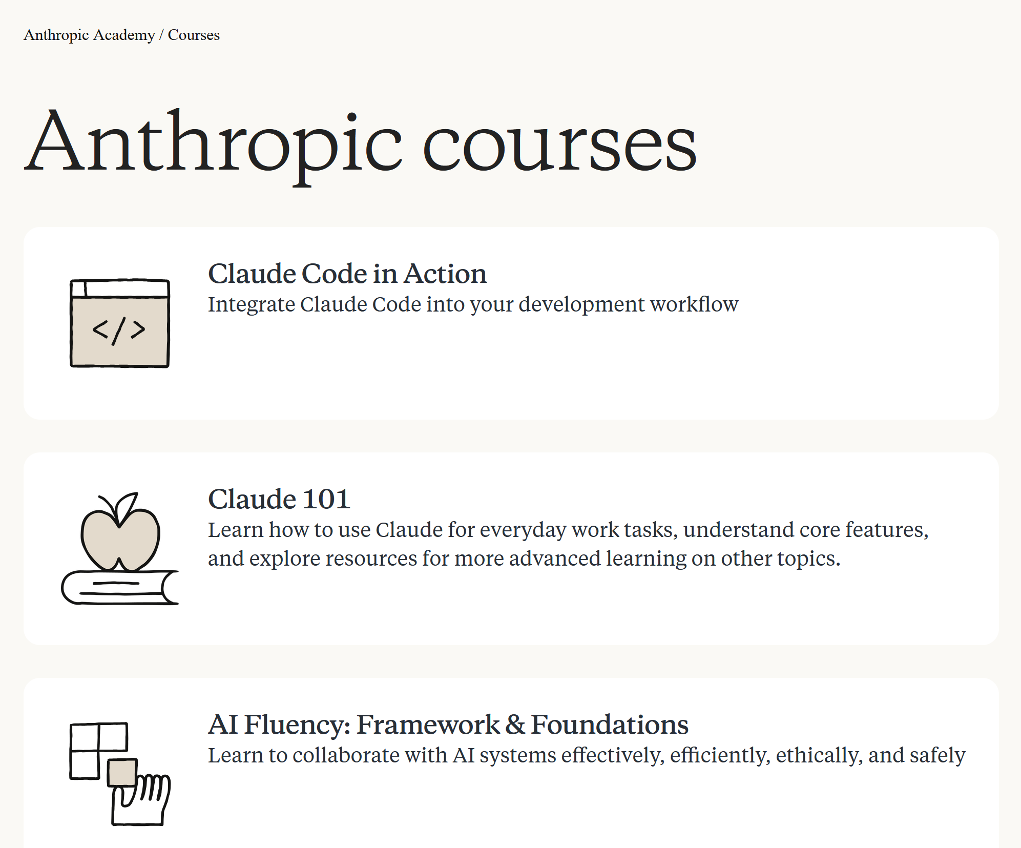 Anthropic 上线了一套完全免费且无需注册的 AI 课程,内容涵盖
