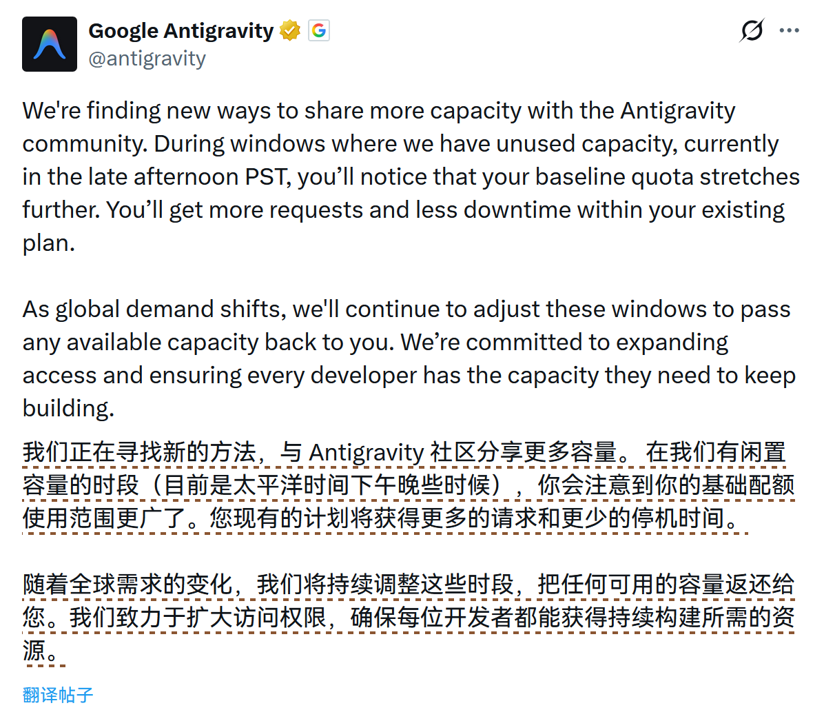 Antigravity 提升非高峰期用户配额 #6