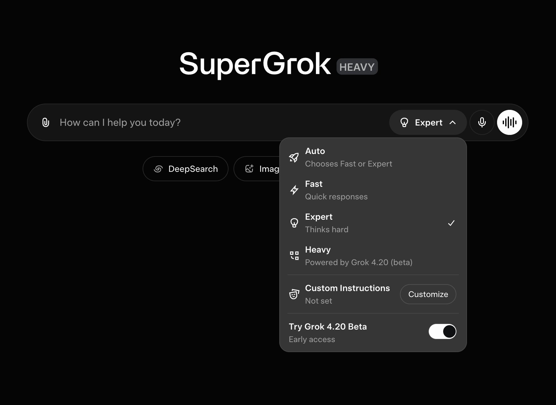 Grok Web 平台近期更新,界面新增 Grok 4.20 Beta 切换开关。启用该选项后,Expert mode 将调用 Grok 4.20 模型运行。此外,平台 Agent 定制能力增强,现已支持创建基于 Grok 4.20 的 Custom Agents,允许用户利用该版本构建个性化智能体。