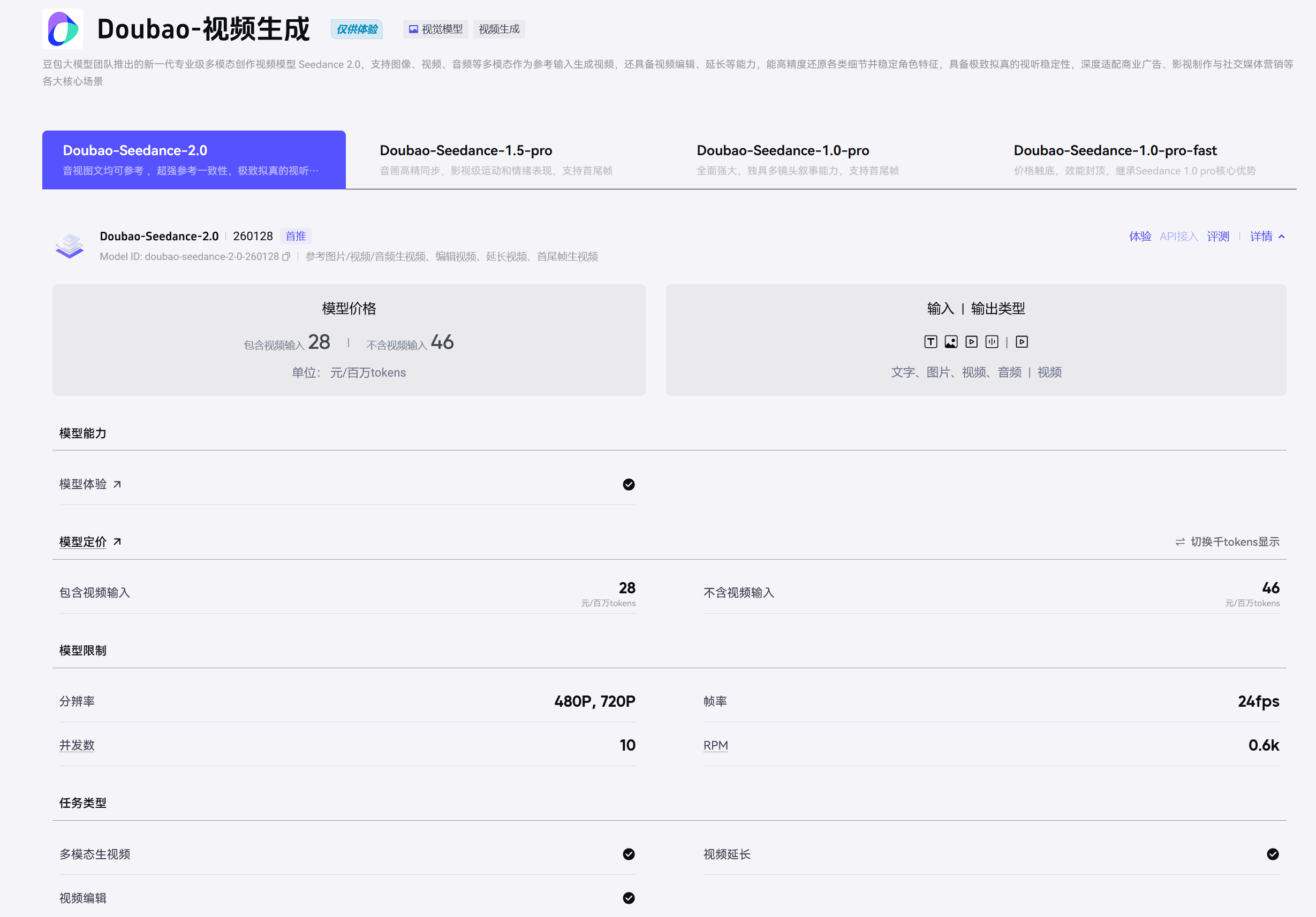 - 火山引擎公布Seedance2.0视频生成服务定价
