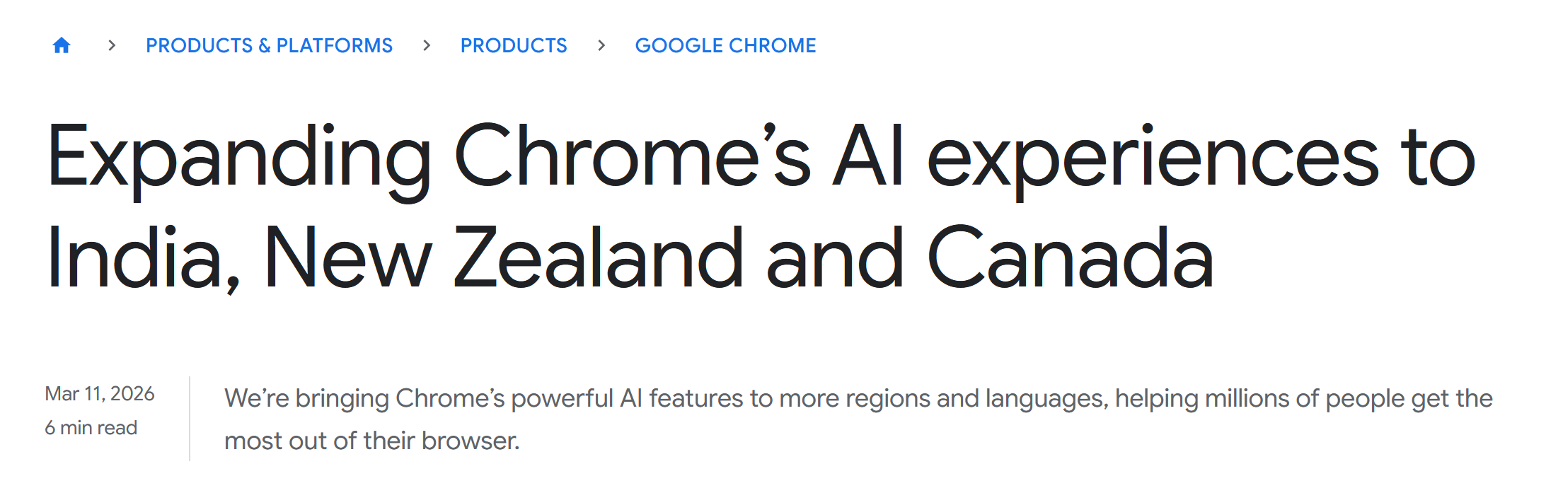 #15 - 谷歌将 Gemini in Chrome 扩展至印度等国 ↗