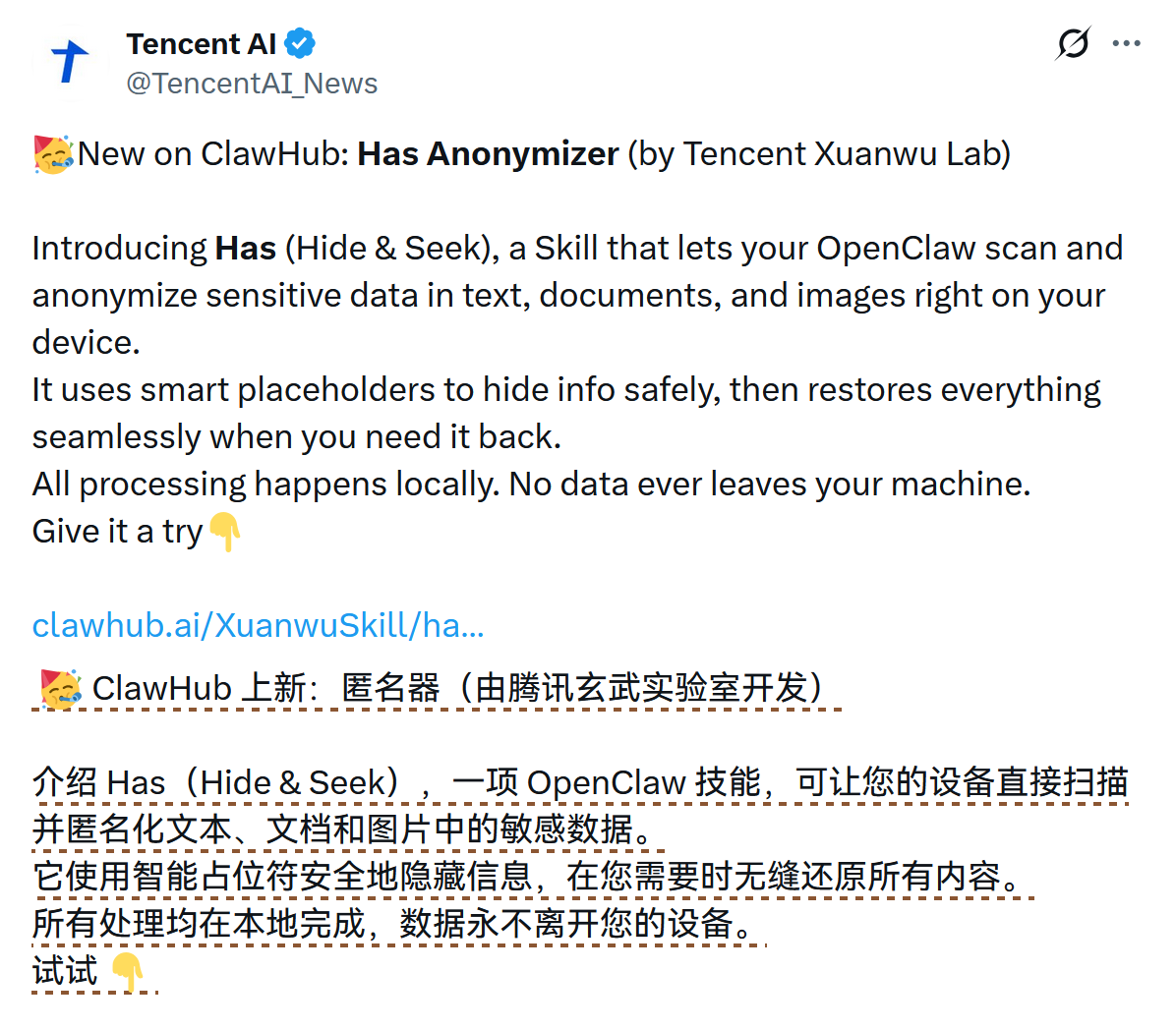- https://clawhub.ai/XuanwuSkill/has-anonymizer