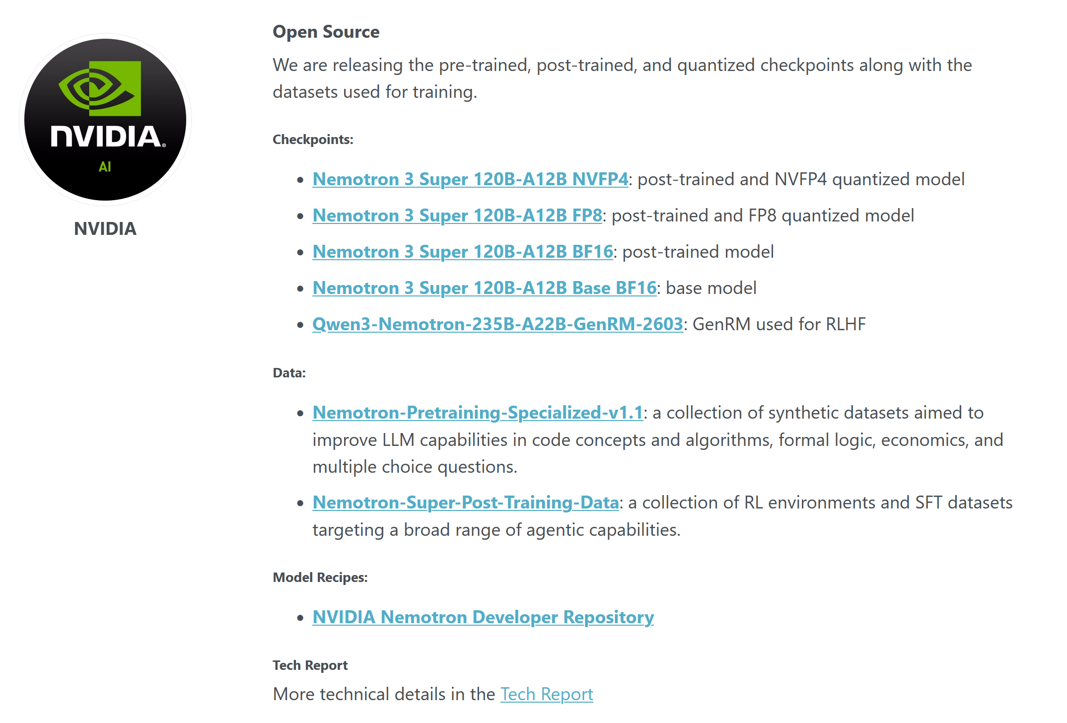- https://huggingface.co/nvidia/NVIDIA-Nemotron-3-Super-120B-A12B-BF16