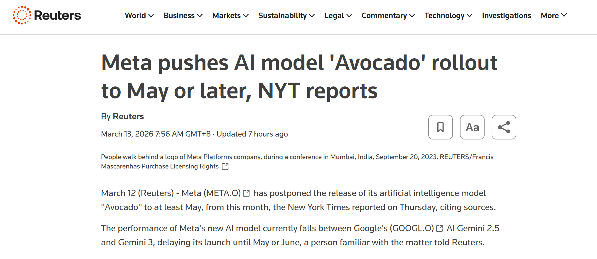 消息称 Meta 推迟 Avocado 模型发布 最早至五六月 #20