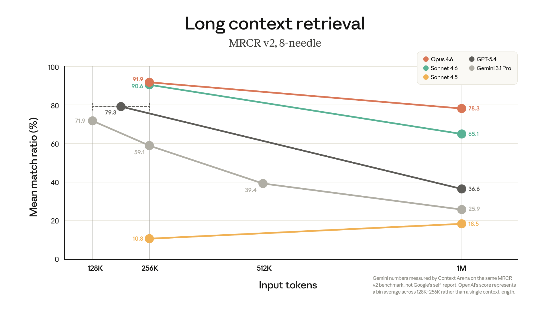 Anthropic 宣布为 Claude 系列模型正式开放 100 万 token 上下文窗口,并取消了阶梯定价,全范围执行标准定价。根据官方数据,Claude 系列模型在处理超长上下文时保持了较高的召回准确性与推理能力。