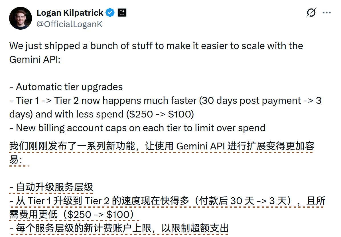 Gemini API 的 Tier 2 门槛降至 100 美元 #8