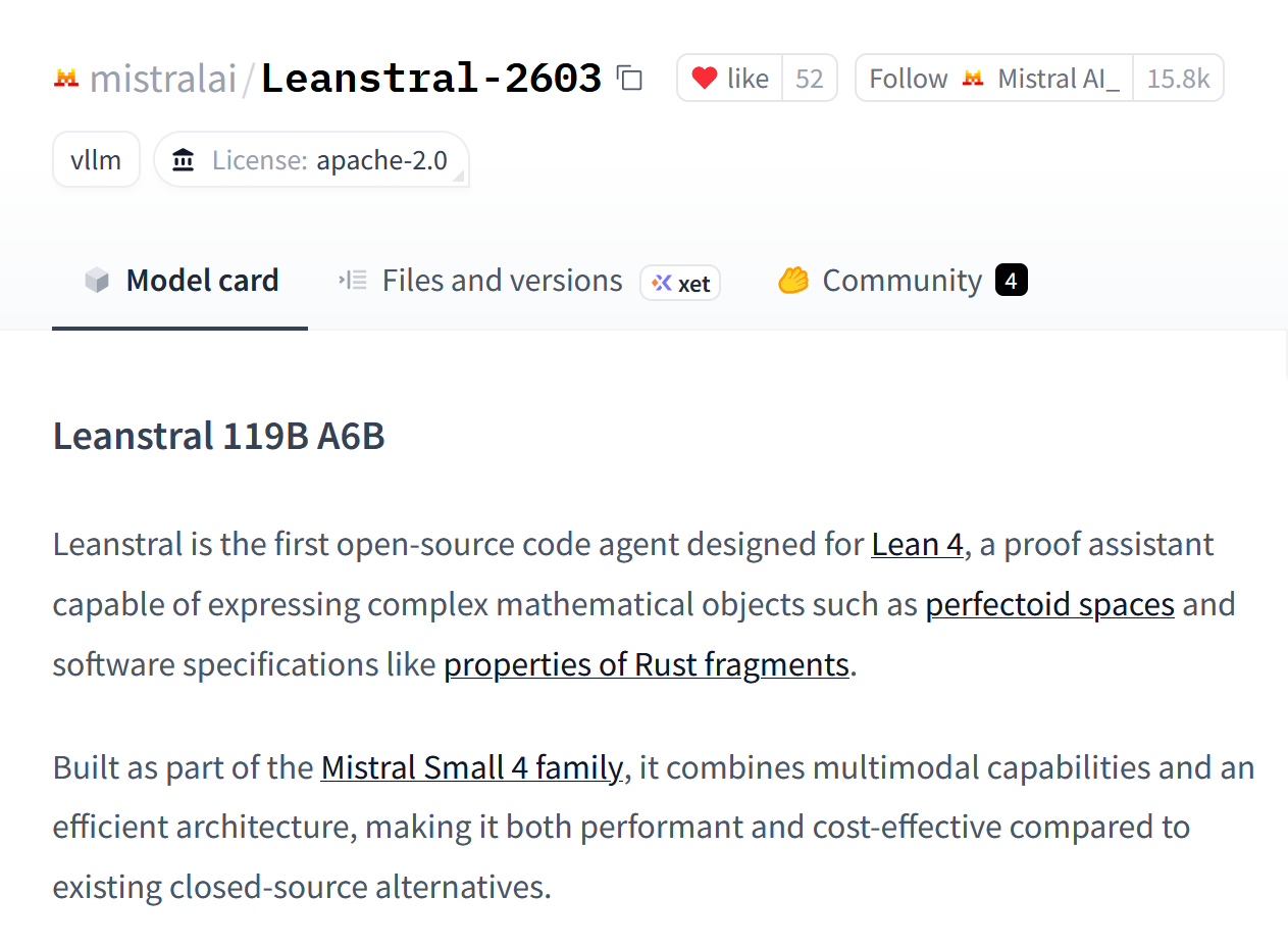 - https://huggingface.co/mistralai/Leanstral-2603