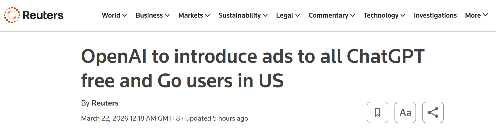 - OpenAI 即将向所有美国 ChatGPT 免费版和Go版用户展示广告 ↗