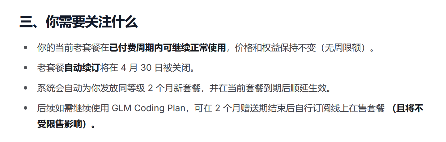 GLM 调整老套餐计划,月底强制终止续订并送两月权益 #2