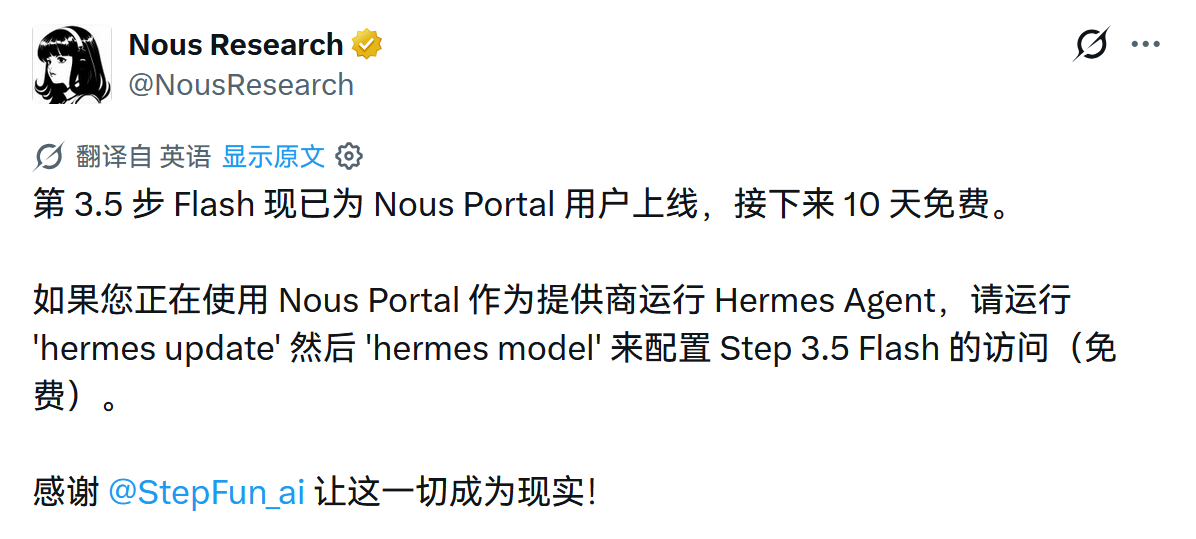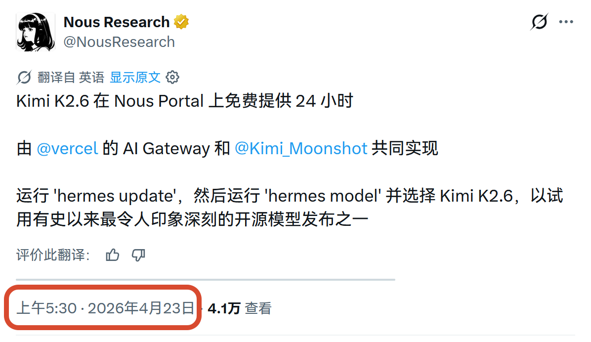 #10 - Hermes Agent 限时免费开放 Kimi K2.6 与 Step 3.5 Flash ↗
