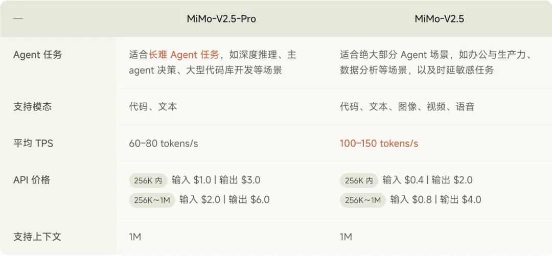 MiMo-V2.5则是为Agent场景而生的原生全模态模型。相关模型已上线API和Token Plan。其中