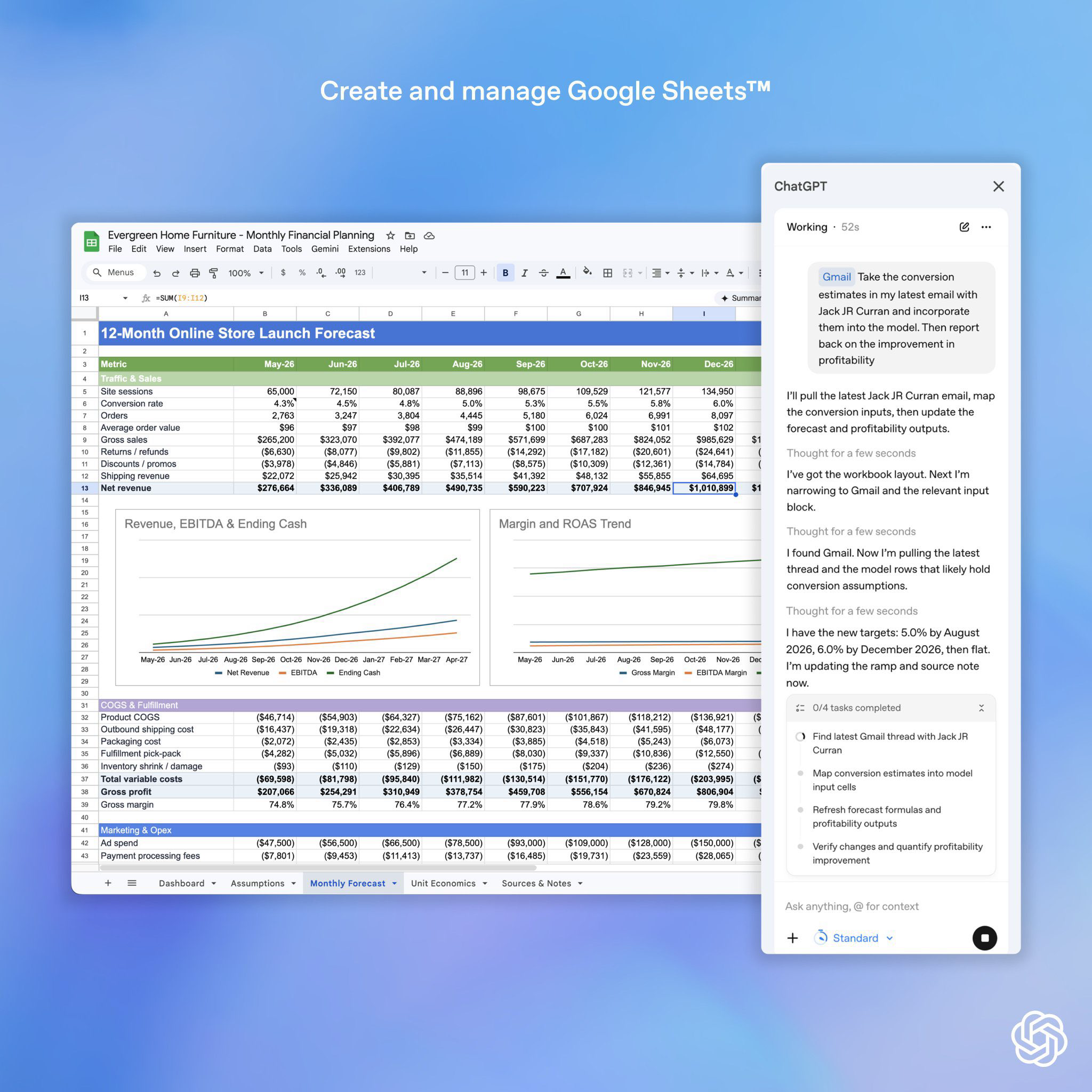 OpenAI 发布了 ChatGPT for Google Sheets。