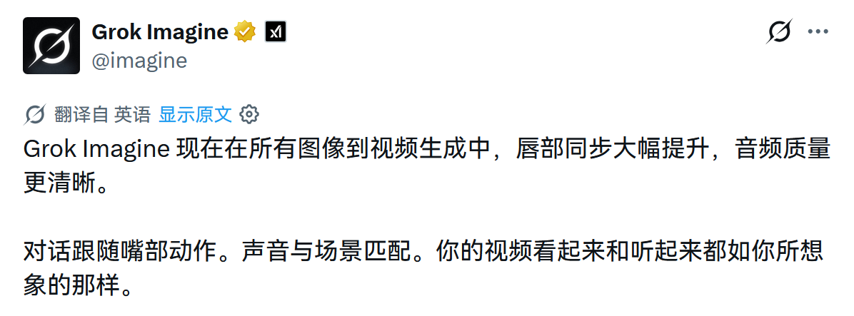 Grok Imagine 升级图生视频功能,改善唇形同步与音质 #8
