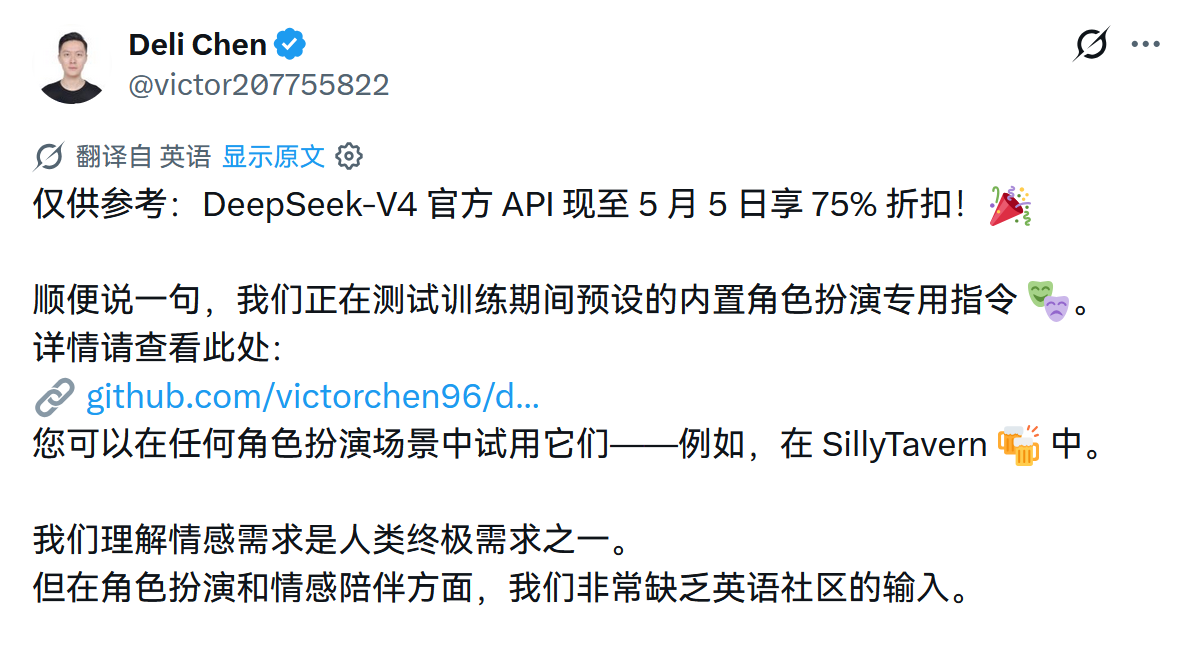 DeepSeek员工在 GitHub 上分享了可以开启 DeepSeek-V4 角色扮演模式的