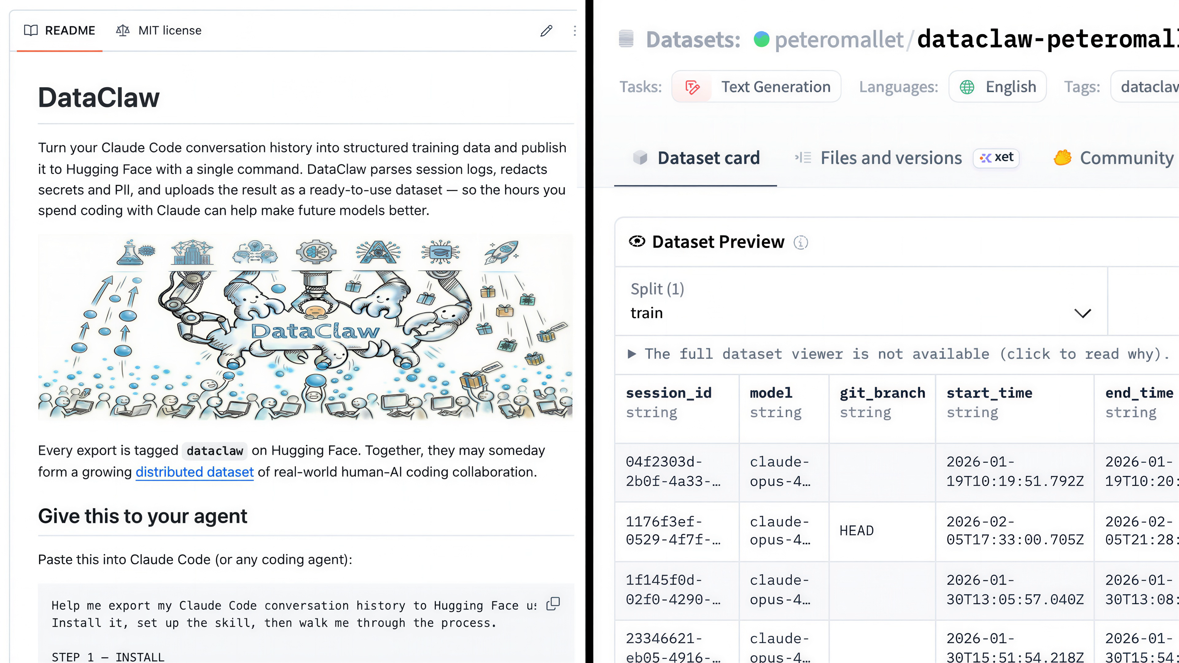 dataclaw,支持用户获取、脱敏个人数据并上传至 Hugging Face。
